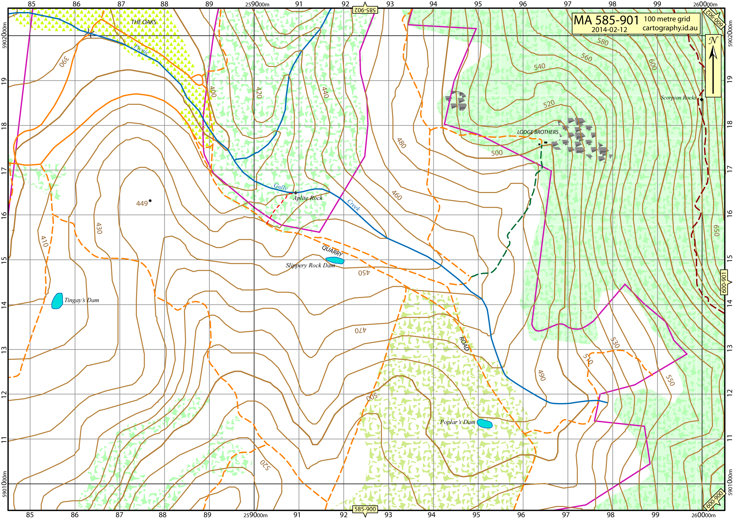 21/10/2016 – Some detail around Barkers Creek Reservoir included. Indistinct track on route to Shepherds Flat Lookout included. Version number discontinued, date is available in bottom right corner.